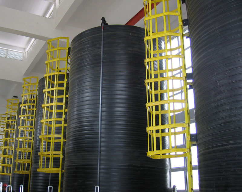 爬梯及護欄結構件采用拉擠工藝制作的玻璃鋼型材,型材中玻璃纖維含量高達70%,足夠的強度確保了型材系統的物理性能。