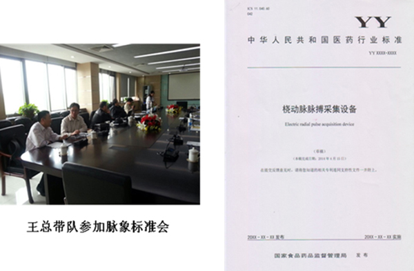 2014年4月,中華人民共和國醫(yī)藥行業(yè)中醫(yī)診斷行業(yè)標(biāo)準(zhǔn)會在天津醫(yī)療器械質(zhì)量監(jiān)督檢驗(yàn)中心召開,公司作為中醫(yī)診斷行業(yè)標(biāo)準(zhǔn)制定方、驗(yàn)證方,董事長王聯(lián)攜技術(shù)總監(jiān)、產(chǎn)品部經(jīng)理應(yīng)邀參加行業(yè)標(biāo)準(zhǔn)會議。