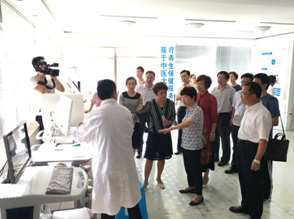 安徽省政協(xié)副主任肖超英到我公司考察工作,圖為參觀中醫(yī)綜合診斷設備